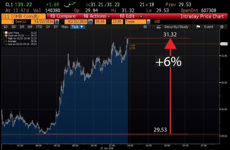Byliśmy także świadkami silnego odbicia na innych rynkach. Indeks Nikkei 225 zakończył dzisiejsze notowania na wielkim plusie – 5,9 proc. O 12 czasu GMT będące najważniejszymi benchamarkami na rynku ropy WTI oraz Brent zyskały na londyńskiej ICE Futures Europe ponad 5 proc. (Brent doszedł do poziomi 31,11 dol. za baryłkę - oznacza to 6,38-proc. wzrost).