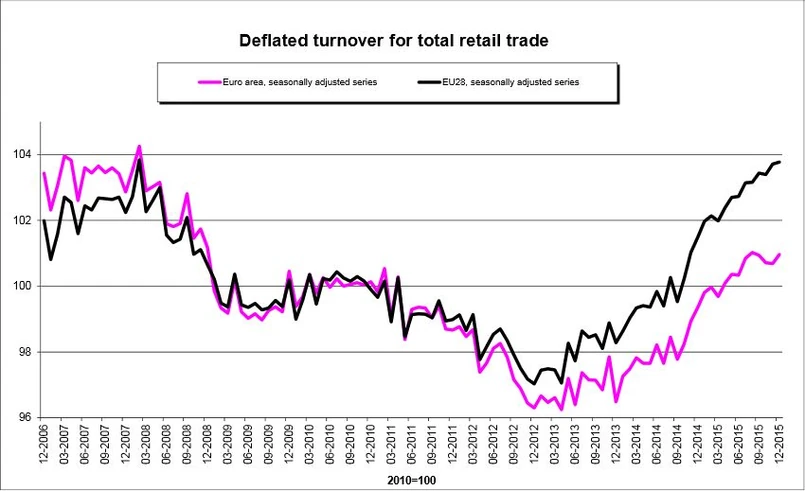 W całej Unii Europejskiej sprzedaż detaliczna wzrosła o 0,1 proc. w ujęciu miesięcznym, zaś w ujęciu rocznym wzrosła o 2 proc. r/r.