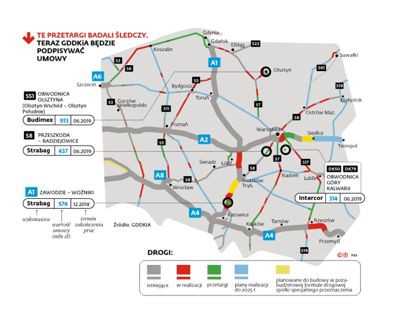 GDDKiA zawiesiła podpisywanie tych umów, mimo że wykonawcy byli już wybrani. Dzisiaj okazuje się, że postępowanie zostało umorzone. – Powodem był brak danych dostatecznie uzasadniających podejrzenie popełnienia przestępstwa – tłumaczy Zbigniew Jaskólski, rzecznik Prokuratury Apelacyjnej w Warszawie. – Otrzymaliśmy potwierdzenie, że umorzenie śledztwa się uprawomocniło – dodaje Jan Krynicki, rzecznik GDDKiA.