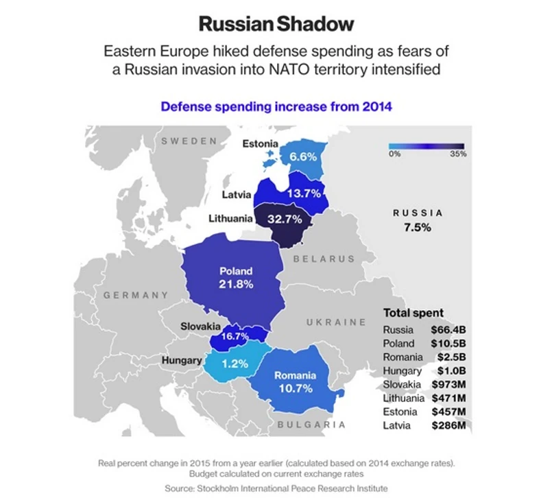 Rosyjska inwazja na Krym spowodowała, że najbliżsi sąsiedzi agresora zwiększyli wydatki na obronność. Kraj Europy Środkowo-Wschodniej czując niebezpieczeństwo ze strony większego i nieprzewidywalnego sąsiada wydają więcej pieniędzy na armie. Co warto dodać, przy poparciu większości społeczeństwa.