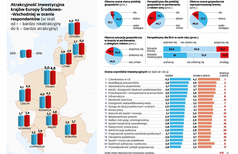 Pomimo niskich ocen w zakresie stabilności politycznej i przewidywalności polityki gospodarczej nasz kraj wciąż cieszy się dużym zaufaniem zagranicznych inwestorów - wynika z 11. edycji ankiety koniunkturalnej, przeprowadzonej przez Polsko-Niemiecką Izbę Handlową. W ostatnim roku ocena atrakcyjności inwestycyjnej w większości państw regionu wzrosła. W przypadku Polski – spadła o dwie dziesiąte punktu. Tym samym nasza przewaga nad resztą stawki jest już minimalna.