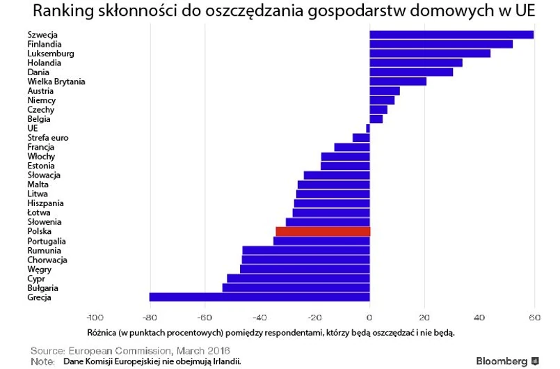 Patrząc na ten ranking nasuwa się jedna uwaga. W niektórych przypadkach niechęć do oszczędzania nie wynika z rozrzutności obywateli danego państwa, a z ich sytuacji materialnej i niskich dochodów. Grecy czy Polacy nie mają czego oszczędzać, bo większość dochodów muszą przeznaczyć na bieżącą konsumpcję. Na samym końcu rankingu plasują się biedniejsze kraje z południa Europy i Europy Wschodniej. Co innego obywatele bogatej Europy Zachodniej czy Skandynawii, która przoduje w tym zestawieniu.