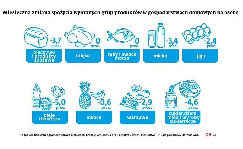 Tak twierdzi prof. Krystyna Świetlik z Instytutu Ekonomiki Rolnictwa i Gospodarki Żywnościowej na podstawie własnych szacunków wykonanych w oparciu o dane GUS. To efekt ogólnego spadku cen żywności, która potaniała o 1,8 proc. – Mogliśmy sobie pozwolić na uwzględnienie w naszej diecie żywności z wyższej półki – wyjaśnia prof. Świetlik.