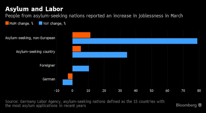 Jak wynika z danych niemieckiego urzędu statystycznego, imigranci spoza Europy szukający azylu w Niemczech byli jedyna grupą, w której w marcu zwiększyło się bezrobocie. Liczba cudzoziemców bez pracy wzrosła tu o 11,3 proc. w porównaniu z poprzednim miesiącem i o 79 proc. w porównaniu z ubiegłym rokiem. W tym samym czasie bezrobocie w Niemczech spadało.
