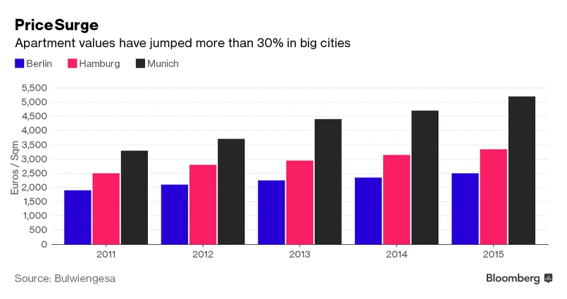 Wraz z rosnącym poziomem zatrudnienia i płac, po dekadzie stagnacji, ceny mieszkań i domów w Niemczech od 2005 roku zaczęły piąć się w górę. Wzrost zamożności Niemców zbiegł się z tendencją do przeprowadzania się do większych miast, takich jak Berlin czy Frankfurt. W 2015 roku wartość nowych kredytów hipotecznych poszybowała w górę o 22 proc. Wcześniej przez około 5 lat rosła w tempie co najwyżej 3 proc. – wynika z danych Bundesbanku.