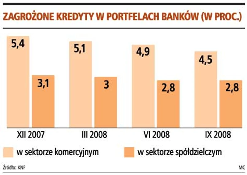 Najczęściej nie ma więc w bankach spółdzielczych potrzeby zaostrzania polityki kredytowej. Jednak także sektor spółdzielczy odczuje skutki kryzysu, a kredytobiorcy pogorszenie sytuacji.