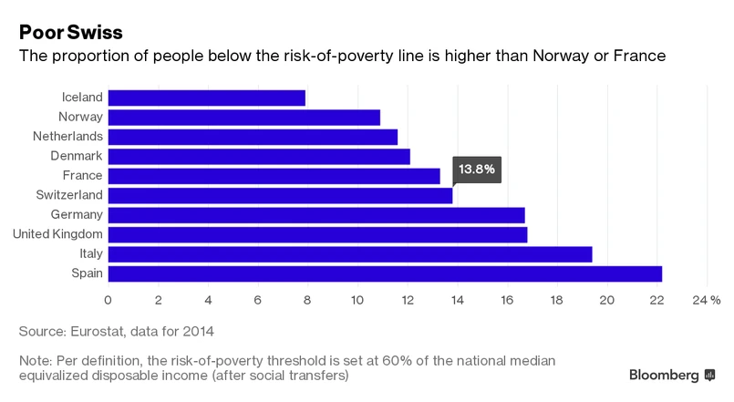 Inicjatorzy programu twierdzą, że wspomniana kwota powinna zapewnić „godną egzystencję”. Obecnie ok. jedna na osiem osób żyje w Szwajcarii poniżej tej granicy. To więcej niż we Francji, Danii i Norwegii. W grupie wiekowej plus 65 aż jedna piąta osób jest zagrożona ubóstwem.