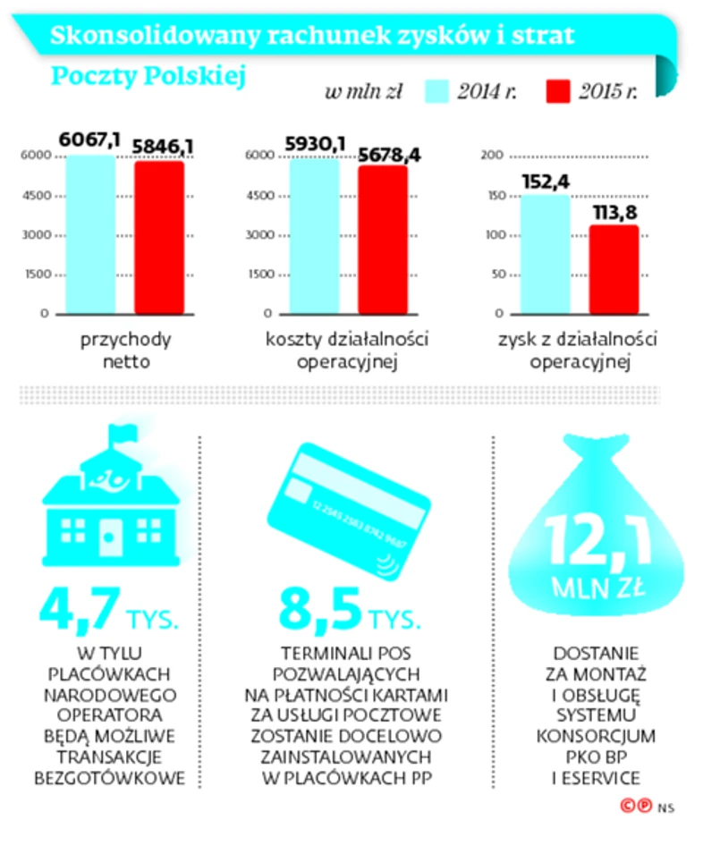 Poczta podpisała umowę z konsorcjum eService i PKO BP na dzierżawę terminali POS oraz obsługę transakcji kartami płatniczymi. Umowa ramowa opiewa na 15 mln zł, ale ostateczna kwota może być niższa, bo będzie uzależniona od liczby transakcji dokonanych przez klientów poczty. Całkowitych kosztów przedsięwzięcia, obejmujących m.in. konieczność dostosowania wewnętrznych systemów informatycznych, spółka nie ujawnia.