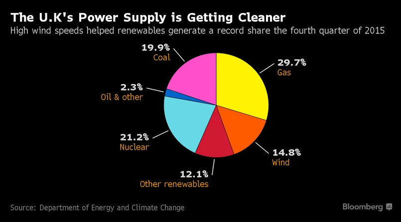 Wskazane powyżej prognozy mogą być szczególnie dotkliwe dla Wielkiej Brytanii. Wraz z ograniczeniem udziału węgla w miksie energetycznym, w kraju pozostało zaledwie 7 elektrowni zasilanych tym surowcem. Nadwyżka energii na Wyspach może więc spaść najbliższej zimy w okolice zera, zmuszając firmę National Grid Plc do wykorzystania rezerw. Wielka Brytania zapowiedziała w 2016 roku zamknięcie elektrowni o łącznej mocy 7 gigawatów, co stanowi równowartość 11 proc. szczytowego zapotrzebowania kraju na energię. Naraża się tym samym na dotkliwe wahania cen energii.
