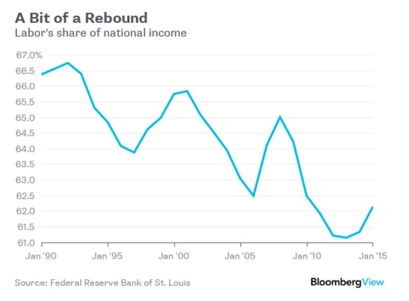 Tak czy inaczej, jeśli jest to długoterminowym trendem, kosztem udziału pracowników w dochodzie narodowym, wówczas trudno się spodziewać, że trend ten sam się skoryguje. Wtedy ostatni wzrost udziału pracowników w dochodzie narodowym okaże się jedynie czasowym odchyleniem.
