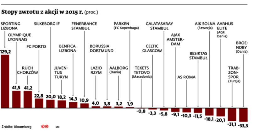 Są jednak i przykłady pozytywne. Cena akcji Borussii Dortmund jest obecnie niemal cztery razy wyższa niż pod koniec 2008 r. Drużyna w 2012 r. zdobyła mistrzostwo kraju, w 2013 r. drugie miejsce w Lidze Mistrzów, a Superpuchar Niemiec dwa razy z rzędu (w 2013 i 2014 r.). Nawet jej trudno jednak równać się z tureckim Besiktasem. Od początku roku cena jego akcji wzrosła trzykrotnie – pomogła poprawa koniunktury na giełdzie w Stambule.