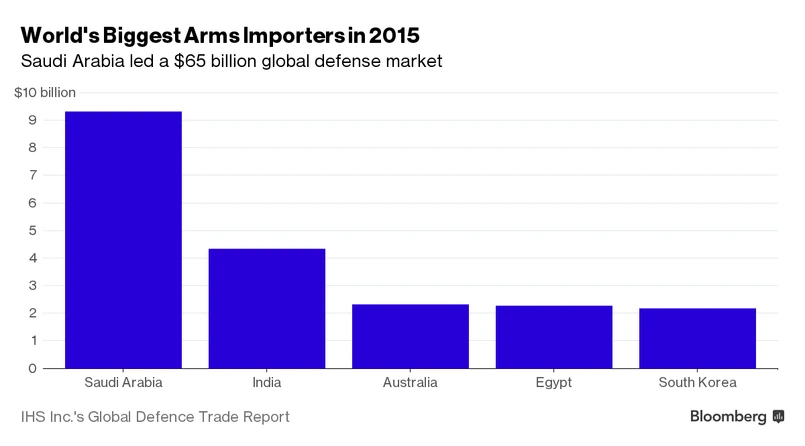 Wśród największych importerów broni w ostatnich latach znalazł się Egipt. W 2015 roku wydał na zbrojenia 2,3 mld dol. Jeszcze przed 2013 rokiem ten znajdujący się w gospodarczym kryzysie kraj wydawał na ten cel poniżej 1 mld dol. Prawie tyle samo (ok. 2 mld dol.) na zbrojenia wydaje Iran, który musi angażować się w starcia zbrojne z bojownikami Państwa Islamskiego.