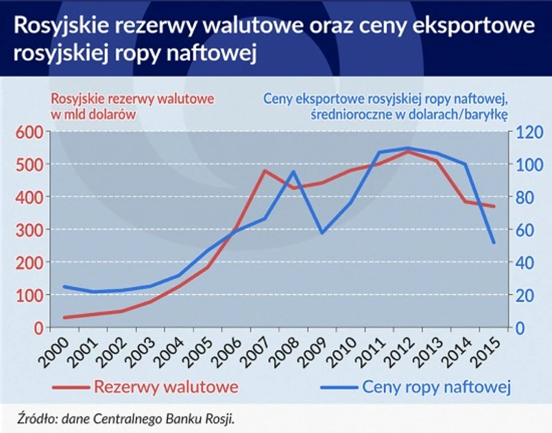 Ten pierwszy wszak rozpoczynał swoje urzędowanie w 2000 roku z poziomem rezerw walutowych 12,5 mld dolarów (w tym czasie polskie rezerwy walutowe wynosiły 27,3 mld dolarów), by na fali szybko rosnących cen ropy naftowej zgromadzić na rachunkach Centralnego Banku Rosji (CBR) już w sierpniu 2008 roku prawie 600 mld dolarów.