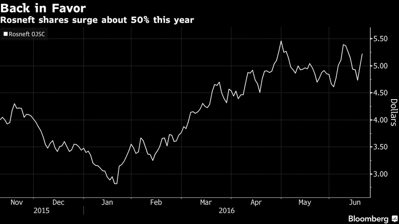 W wyniku ujawnionej informacji akcje Rosnieftu poszły w górę o 5 proc., co oznacza kolejne po piątkowych wzrosty (cena firmy zwiększyła się w ciągu ostatnich dni o ponad 10 proc.). Jej rynkowa wartość to obecnie 55,4 mld dol. Akcje Rosnieftu zyskały w tym roku już ok. 50 proc.