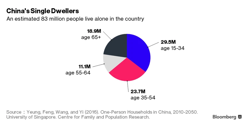 Jak wynika z oficjalnych danych, w 2014 roku w Państwie Środka było zarejestrowanych 66 mln jednoosobowych gospodarstw domowych, co stanowiło 15 proc. ogółu. Dla porównania, jeszcze w 1990 roku single odpowiadali tylko za 6 proc. wszystkich gospodarstw domowych w Chinach. Dziś ich liczba może być jeszcze większa i dochodzić do 83 mln (to więcej niż cała populacja Niemiec), a do 2050 roku wzrosnąć nawet do 132 mln osób – wynika z szacunków Jean Yeung, dyrektor Centrum ds. Rodziny i Badań Populacji na Narodowym Uniwersytecie Singapuru.