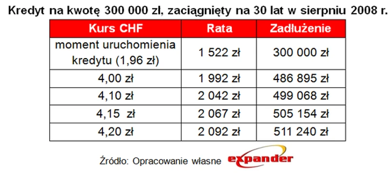 Kredyt na kwotę 300 000 zł.pngRośnie również kurs euro, ale w znacznie mniejszym stopniu niż franka. Rano europejska waluta kosztowała aż 4,50 zł, ale później kurs spadł do 4,45 zł, czyli jest niewiele wyższy niż przed miesiącem, kiedy wynosił 4,43 zł.