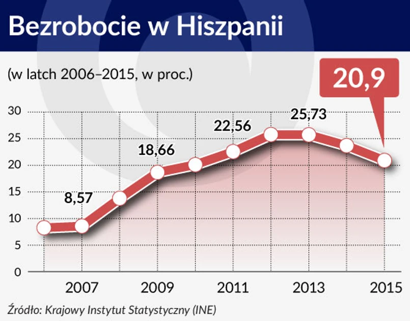 Mimo deflacji wynoszącej -1,1% w 2014 roku oraz -0,19% w 2015 roku (dane INE) 80 proc. Hiszpanów uważa, że koszty życia wciąż rosną (badanie instytutu Metroscopia). I tutaj znów dane INE potwierdzają powszechne przekonania. Średni roczny dochód gospodarstwa domowego netto wynosi obecnie 26 092 euro i jest najniższy od 2008 roku. Oznacza to, że poprawa wskaźników makroekonomicznych nie przekłada się na polepszenie sytuacji gospodarstw domowych. Aż 70 proc. Hiszpanów uważa, że państwo powinno interweniować i niwelować rosnące nierówności społeczne. Postulaty partii lewicowych trafiają zatem na podatny grunt.