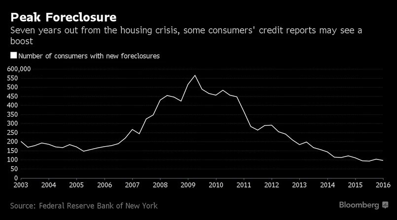 Liczba konsumentów, których raporty kredytowe zostały obciążone zajęciem nieruchomości była rekordowa w drugim kwartale 2009 roku, kiedy to ucierpiało na ich skutek aż 566 tys. osób. W ciągu czterech lat (do 2010 roku) liczba ta wzrosła do 6,8 mln osób.