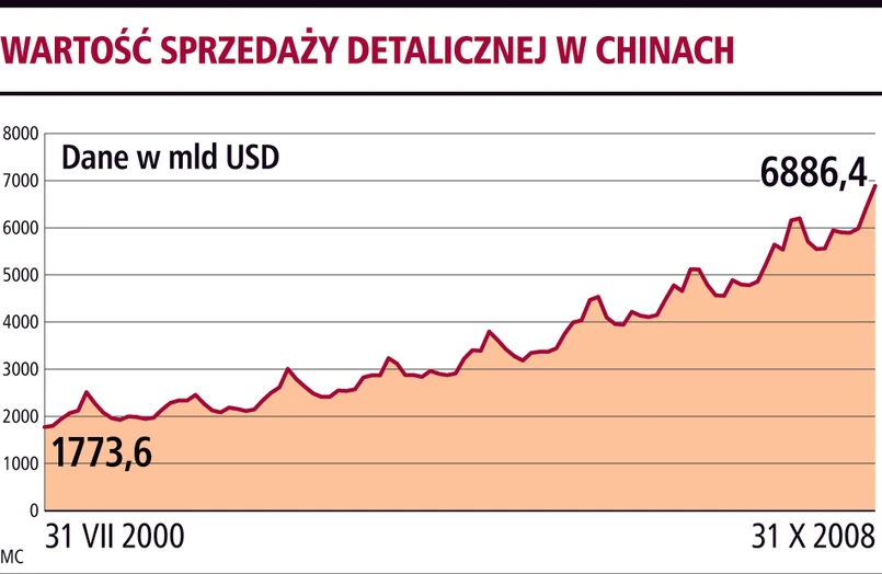 Perspektywy są rzeczywiście kuszące. W październiku tego roku sprzedaż detaliczna w Państwie Środka zwiększyła się o 22 procent. To najwyższe tempo wzrostu w ciągu ostatnich 9 lat.