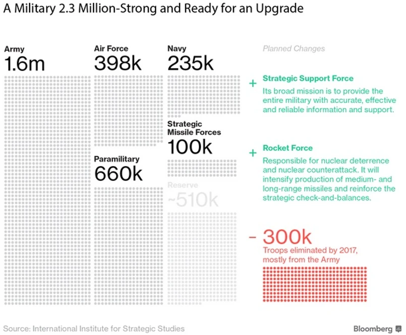 Chiński prezydent Xi Jinping płaci żołnierzom, aby opuścili największą armię świata. Personel wojskowy zostanie hojnie wynagrodzony za opuszczenie jej szeregów. Ludowa Armia Chin jest oczkiem w głowie rządzącej partii. Na jej wizerunku nie może być skazy. Potencjalne informacje o zmniejszeniu liczebności nie byłyby wskazane ze względu na sytuację wewnętrzną kraju, ale także politykę ekspansji prowadzoną na Morzu Południowochińskim.