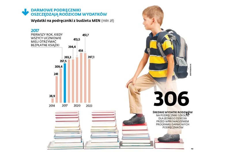 W ubiegłym roku cztery roczniki edukacji ogólnej (klasy: piąta, szósta oraz druga i trzecia gimnazjum) nie mogły liczyć na finansowanie książek z MEN. W tym roku – zgodnie z harmonogramem reformy – pozostały jeszcze dwa, którym to rodzice muszą kupić podręczniki. To wydatek ponad 300 zł za komplet.