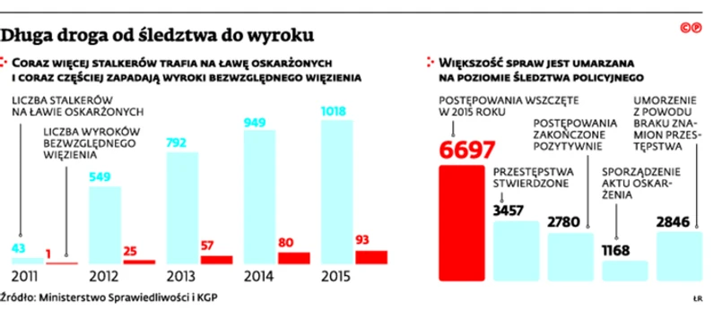 – Od czasu penalizacji stalkingu w 2011 r. rośnie liczba wytaczanych spraw oraz świadomość i rozpoznawalność tego przestępstwa wśród przedstawicieli wymiaru sprawiedliwości – podkreśla mecenas Barbara Szopa, specjalizująca się w pomocy ofiarom przestępstwa uporczywego nękania i autorka blogu stalking.com.pl. Widać to doskonale w najnowszych danych Ministerstwa Sprawiedliwości. W 2015 r. skazano za takie przestępstwa po raz pierwszy ponad tysiąc osób, z czego niemal setka została ukarana bezwarunkowym więzieniem.