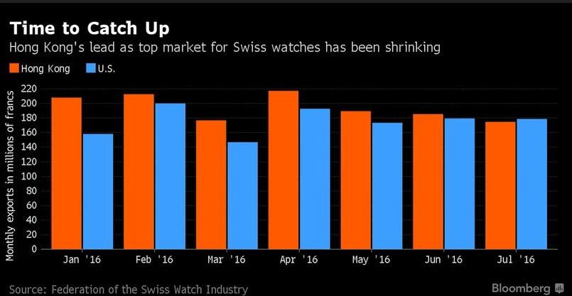 Hong Kong był największym rynkiem dla szwajcarskich zegarków od 2008 roku.