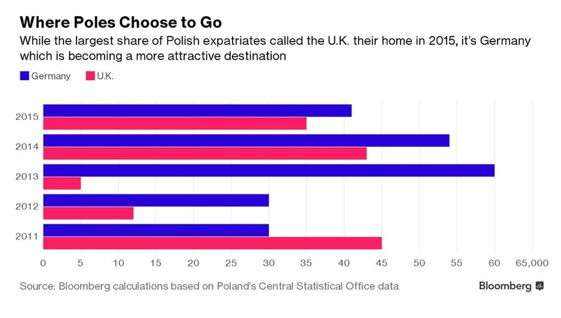Choć w Wielkiej Brytanii wciąż mieszka najwięcej polskich emigrantów w Europie, to pod względem liczby osób decydujących się na emigrację już od 4 lat na pierwszym miejscu są Niemcy. To właśnie tam w 2015 roku przeniosło się za pracą ok. 41 tys. Polaków.