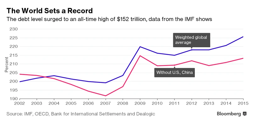 Dług sektora niefinansowego globalnej gospodarki wzrósł od początku tego stulecia niemal dwukrotnie w ujęciu nominalnym. W zeszłym roku sięgał już 152 bln dol. Co gorsze wciąż rośnie – alarmuje Międzynarodowy Fundusz Walutowy. Do sumy tej wlicza się długi rządów, firm z sektora niefinansowego i gospodarstw domowych.