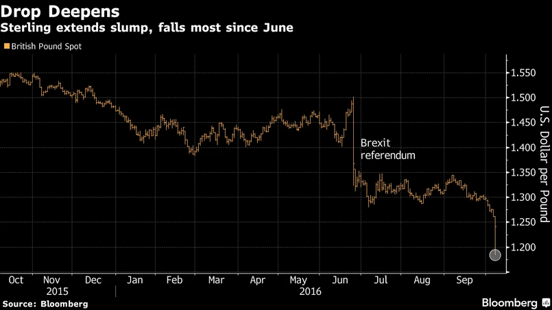 „Co się stało?” i „Gdzie był dołek?” to najczęściej zadawane pytania po nocnym załamaniu funta. Tąpnięcie GBP/USD o ponad 6 proc. trudno wytłumaczyć reakcją na jedną konkretną informację. Niektóre źródła wskazują na wczorajsze komentarze prezydenta Francji Hollande, według którego Wielka Brytania musi ponieść konsekwencje opuszczenia UE, wzmacniając tym samym groźbę „twardego Brexitu”. Ale to za mało, by odpowiedzieć za taką siłę spadku dokonana w zaledwie 2 minuty. Za dzieło zniszczenia winę ponosi niska płynność na starcie sesji w Azji spotęgowana nadgorliwością algorytmów transakcyjnych, które uderzyły sprzedażą funta w rynek, gdzie nikt nie chciał kupować. Zapewne kilka godzin zajmie ustalenie faktycznego dołka na GBP/USD, który znajduje się gdzieś między 1,13 a 1,19.