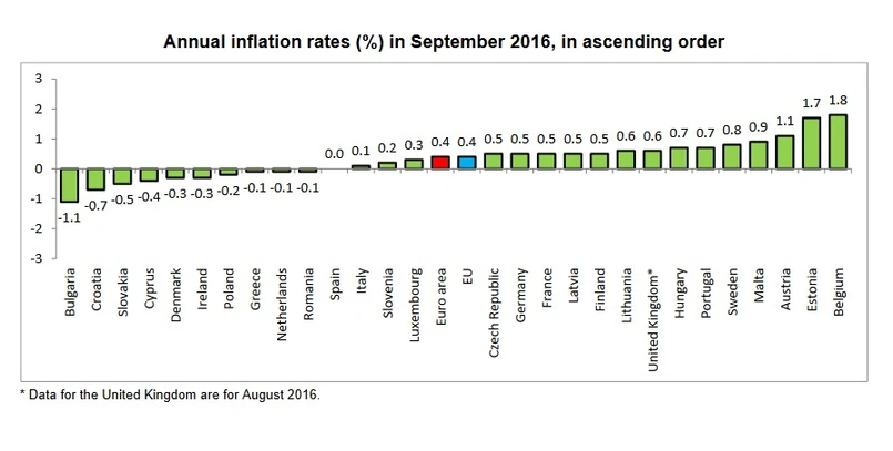 W całej UE inflacja wyniosła we wrześniu br. 0,4 proc. rok do roku wobec 0,3 proc. rok do roku w sierpniu.