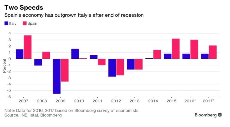 Włochy i Hiszpania – odpowiednio trzecia i czwarta największa gospodarka Unii Europejskiej - obrały inne drogi wyjścia z recesji, którą poprzedził kryzys finansowy.