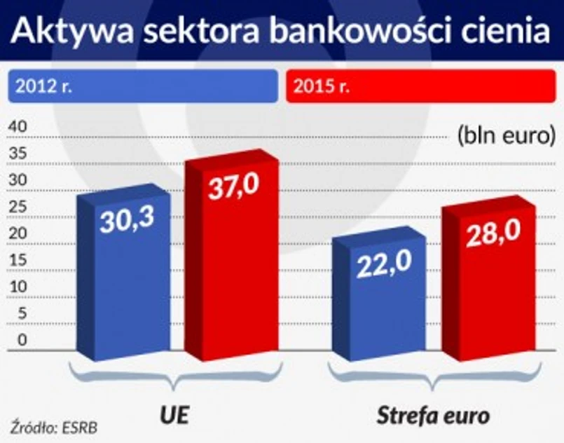 Wartość aktywów sektora bankowości cienia w Unii wzrosła od 2012 roku do końca 2015 r. o 22 proc., a od końca poprzedniego roku – o 5 proc. O ile na koniec 2008 roku aktywa tego sektora odpowiadały połowie sektora bankowego w UE, w 2015 roku stanowiły one już 87 proc. W samej strefie euro natomiast od 2012 roku sektor ten urósł o 27 proc. do 28 bilionów euro na koniec 2015 roku. Średnioroczny wzrost w ciągu ostatnich lat wynosi w niej 8 proc.