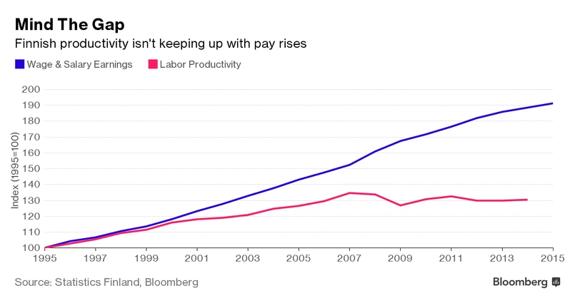 Premier kraju Juha Sipila, milioner, który fortuny dorobił się majątku własną ciężką pracą twierdzi, że kluczem do ożywienia gospodarki jest ożywienie eksportu. Polityk, który wygrał wybory, obiecując nadejście nowej ery gospodarczej po Nokii podkreśla, że problemem kraju jest nieproporcjonalność produktywności pracy oraz płac. Luka w zakresie konkurencyjności pomiędzy Finlandią i jej głównymi partnerami handlowymi wynosi aż 15 proc.