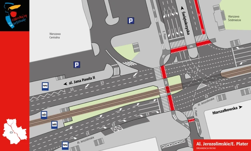 A oto najważniejsze zasady, jakie mają obowiązywać na skrzyżowaniu Al. Jerozolimskich z ul. Emilii Plater ok. połowy grudnia: