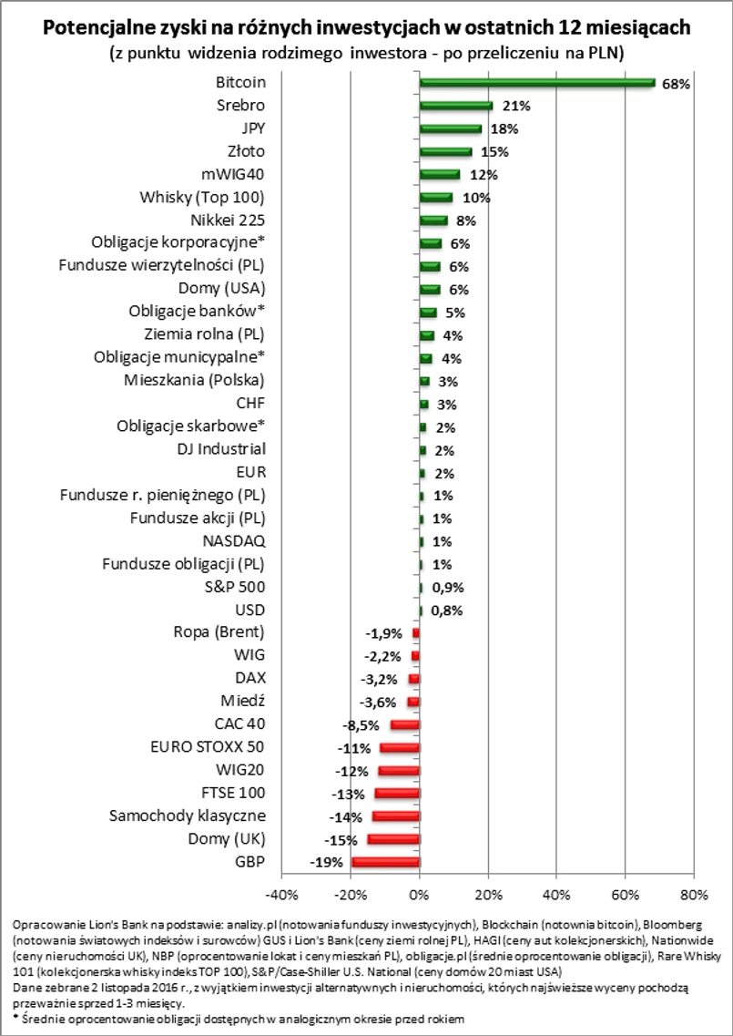 Wciąż jednak najnowsze dane zebrane przez Lion’s Bank pokazują, że na 35 aktywów, których wyceny są monitorowane w ramach comiesięcznego badania aż 24 zanotowały wzrosty cen w ujęciu rocznym. Bilans pozostaje więc pozytywny niestety z pewnymi wyjątkami.