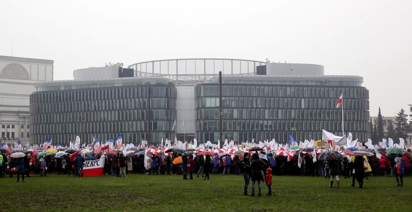 "Chcemy być głosem waszego protestu w Sejmie, będziemy walczyć tam za was. Wy musicie wyjść na ulicę i walczyć za swoją pracę, ale też o dobro naszych dzieci na ulicach. Możemy ich powstrzymać, musimy ich powstrzymać. Nie pozwólmy im zabrać naszej szkoły" - wzywała Katarzyna Lubnauer (N). Zapowiedziała zgłoszenie w Sejmie wniosku o odrzucenie projektów ustaw edukacyjnych w pierwszym czytaniu.