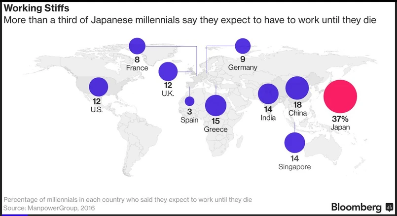 Powód? Japońscy millenialsi już dziś myślą o tym, że będą musieli pracować aż do śmierci, a system opieki emerytalnej nie zapewni im odpowiedniej przyszłości. Ponad jedna trzecia z nich obawia się, że utkną na gorzej płatnych stanowiskach pracy do końca życia. Obecnie z powodu niższych wynagrodzeń wiele młodych osób odkłada lub nawet rezygnuje z decyzji o małżeństwie, kupnie domu czy posiadaniu potomstwa.