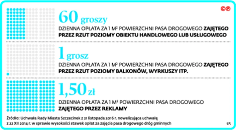 Decyzja radnych Szczecinka nie jest jednak wyjątkiem w skali kraju. W wielu gminach od lat funkcjonują podobne opłaty. Zwykle jednak właściciele muszą je płacić w związku z umieszczeniem np. reklam na budynkach, które wchodzą w przestrzeń pasa drogowego. Stawki są wtedy znacznie wyższe (np. 2 zł za 1 mkw. powierzchni dziennie). W Krakowie w 2011 r. uchwalono również opłatę za balkon w wysokości 10 gr dziennie.