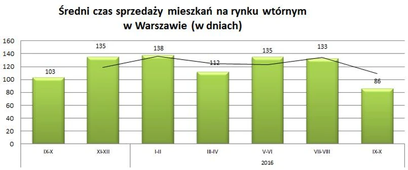 Analizując transakcje przeprowadzone w okresie wakacyjnym przez pośredników Metrohouse w Warszawie można było odnieść wrażenie, że w kolejnych miesiącach coraz trudniej będzie można liczyć na szybką transakcję. Tymczasem dane sprzedażowe z września i października napawają optymizmem. Średni czas sprzedaży mieszkań na rynku wtórnym w Warszawie spadł do 86 dni, co oznacza, że jest on aż o 1,5 miesiąca krótszy niż w poprzednim notowaniu. 28 proc. transakcji było przeprowadzonych na mieszkaniach, które w ofercie pośredników były krócej niż 30 dni. To bardzo dobry wynik mając na uwadze fakt, że mamy do czynienia z dużą podażą mieszkań na rynku, a proces decyzyjny klientów ulega wydłużeniu.