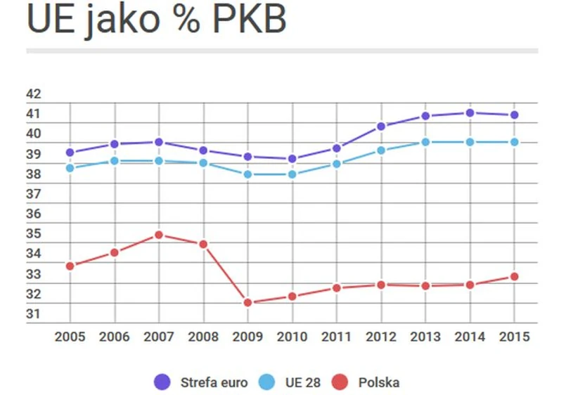 Wyniki dla Polski w tym zestawieniu plasują się znacznie poniżej średniej unijnej. W 2015 r. wpływy do państwowej kasy w postaci podatków i innych danin stanowiły 33,3 proc. polskiego PKB.