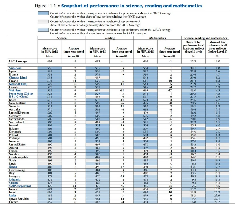 W całym międzynarodowym badaniu OECD PISA 2015 uczestniczyło ponad 500 tys. uczniów z 72 krajów i regionów.