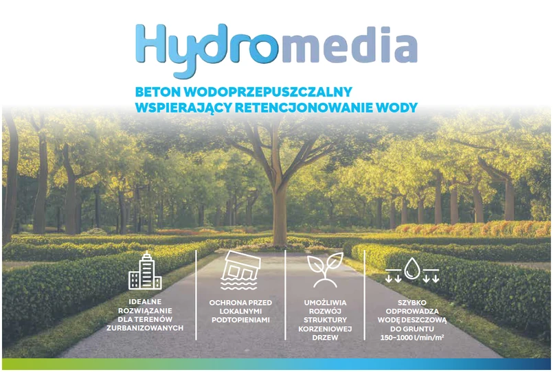 Retencja wody w miastach staje się coraz bardziej palącym problemem, z którym muszą zmierzyć się metropolie na całym świecie. Wzrost urbanizacji prowadzi do znacznego zmniejszenia obszarów przepuszczalnych, co utrudnia naturalną infiltrację wód deszczowych. Nawet niewielkie opady deszczu mogą prowadzić do poważnych problemów, gdy brak jest dostatecznych obszarów zielonych czy też systemów retencji. Rozwiązaniem jest Hydromedia razem z warstwami przepuszczalnymi w podbudowie, które nie tylko zatrzymują wodę deszczową, lecz także pozwalają na poprawę warunków siedliskowych nowo sadzonych drzew. Tradycyjne utwardzone powierzchnie są nieprzyjazne dla roślin. Rozwiązanie Holcim umożliwia rozwój roślinności w pobliżu utwardzonych obszarów, co sprzyja zwiększeniu bioróżnorodności w miastach. Roślinność taka nie tylko poprawia estetykę przestrzeni miejskiej, ale również pełni ważne funkcje ekologiczne.