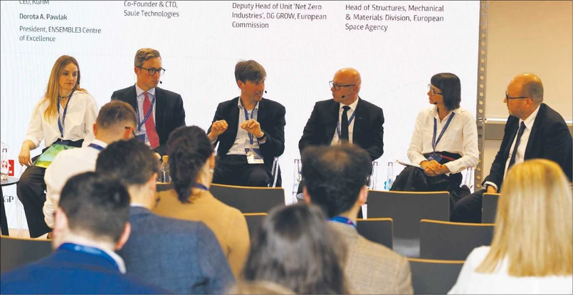 STRATEGICZNE ŁAŃCUCHY WARTOŚCI. Wprowadzenie do dyskusji wygłosił Jacek Truszczyński (DG GROW, KE). W panelu „Bezpieczeństwo gospodarcze: od Ziemi do czystych technologii i przestrzeni kosmicznej”, moderowanym przez Rolfa Kuby’ego (Euromines), obok Jacka Truszczyńskiego wzięli udział: Andrzej Szydło (KGHM), Dorota A. Pawlak (Ensemble Centre of Excellence), Stephane Mespoulet (ESA) i Olga Malinkiewicz (Saule Technologies). Dyskusja z prelegentkami i prelegentami reprezentującymi cały łańcuch wartości surowców krytycznych dotyczyła dywersyfikacji łańcucha dostaw w celu zmniejszenia zależności od (nie zawsze pewnych i obliczalnych) partnerów zewnętrznych oraz strategii gospodarki o obiegu zamkniętym. Siłą rzeczy odnosiła się też do unijnych (nad)regulacji oraz praktyk biurokratycznych osłabiających rozwój innowacji i utrudniających wszystkie wymienione wyżej działania na rzecz konkurencyjności i niezależności unijnej gospodarki, a więc niemal bezpośrednio uderzających w bezpieczeństwo Europy.