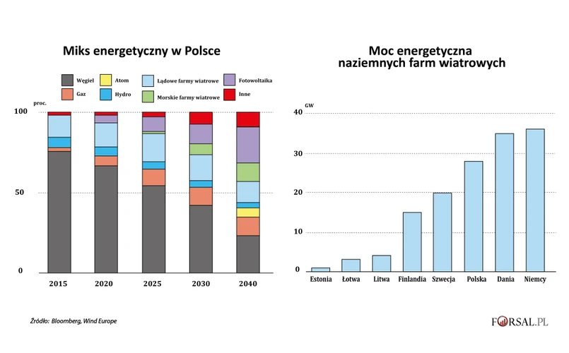 Według szacunków Międzynarodowej Agencji Energii (MAE) Polska w latach 2019-2024 zwiększy swoją moc odnawialną o 65 proc., głównie z lądowych farm wiatrowych. Pierwsze morskie turbiny wiatrowe na Morzu Bałtyckim mają zacząć wytwarzać energię do 2025 r.
