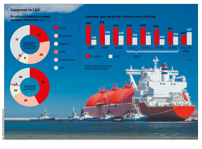 Drugim mają być perspektywy zagwarantowania bezpieczeństwa energetycznego Europie. Magazyny gazu na Starym Kontynencie jeszcze nigdy nie świeciły takimi pustkami. Pod koniec zeszłego tygodnia zapełnione były średnio w ok. 36 proc., podczas gdy o tej samej porze w ubiegłym roku - w niemal 50 proc. Jednocześnie największy dostawca, czyli rosyjski Gazprom, ogranicza przesył, poprzestając na realizacji kontraktowego minimum. Ewentualny atak rosyjskich wojsk na Ukrainę pogorszyłaby jeszcze sytuację.