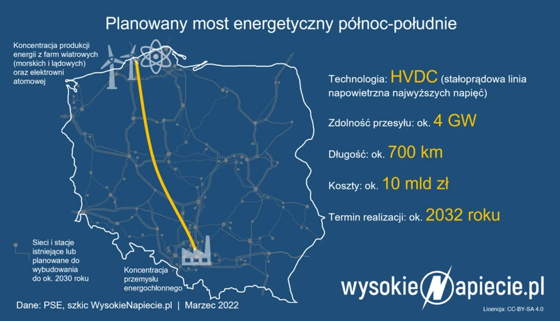 Produkcja energii w Polsce zaczyna się bowiem koncentrować na północy kraju. Już dziś w województwach zachodniopomorskim, pomorskim czy kujawsko-pomorskim skoncentrowana jest większość z ok. 7 GW mocy lądowych elektrowni wiatrowych (PSE zakłada, że za 10 lat ich łączna moc w całym kraju wyniesie 11 GW). Do tego do lat 30. XXI wieku dojdzie nawet 11 GW mocy w morskich farmach wiatrowych i – być może – kolejne 3 GW mocy elektrowni atomowej. Na północy powstaje też nowe połączenie stałoprądowe z Litwą o mocy 700 MW, która umożliwi synchronizację państw bałtyckich z europejskim systemem elektroenergetycznym.