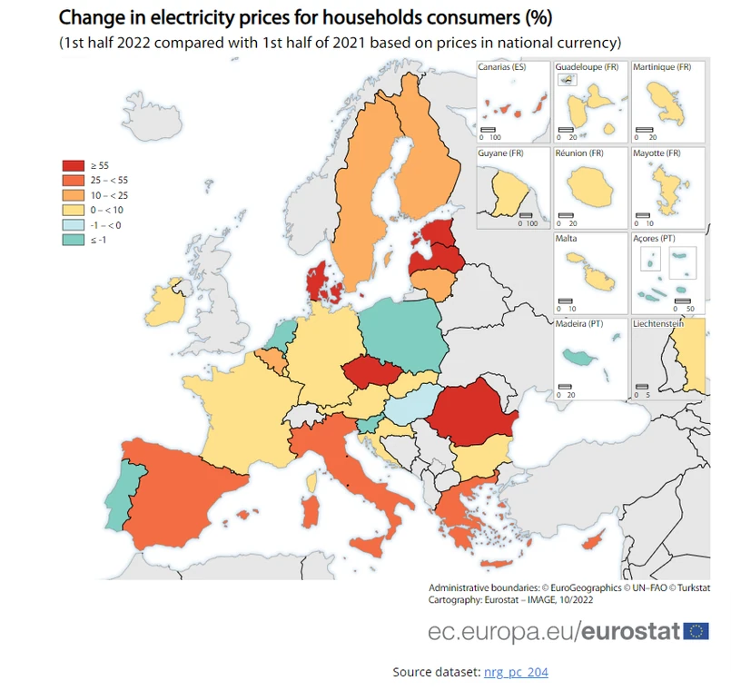 Zgodnie z opublikowanymi danymi najdrożej za prąd trzeba było zapłacić: w Danii (0,4559 euro za kWh); Belgii (0,3377 euro za kWh); Niemczech (0,3279 euro za kWh) oraz we Włoszech (0,3115 euro za kWh). Najtaniej z kolei było w Holandii (0,0595 euro za kWh); na Węgrzech (0,0948 euro za kWh); w Bułgarii (0,1093 euro za kWh) oraz na Malcie (0,1293 euro za kWh).