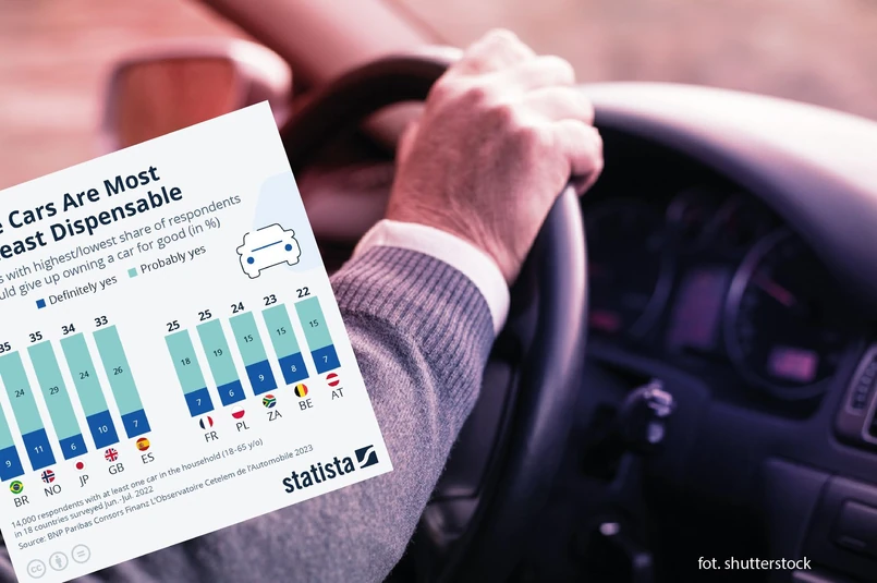 W Polsce chęć rezygnacji z własnych czterech kółek deklarowało 25 proc. przy czym "zdecydowanie tak" odpowiedziało tylko 6 proc. badanych.