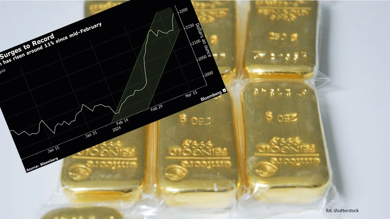 Cena złota kontynuuje rajd, który trwa od połowy lutego. Na początku sesji złoto podrożało o 1,6 proc. do 2220,89 dolarów za uncję. W Singapurze około godziny 14:32 miejscowego czasu cena złota na rynku spot wzrosła do 2206,61 dolarów za uncję. Wyższe ceny miały też inne metale szlachetne - srebro, platyna i pallad.